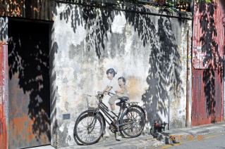 | ペナン島の自転車をモチーフにした壁画(自転車は本物) |