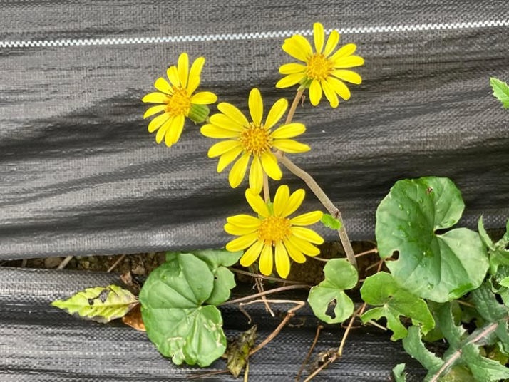 12.13 今朝の散歩de 今時珍しいわりと鮮やかな花。何の花かと思ったら葉っぱはフキに似ている。ツアブキ今頃咲くのかな?4177歩。