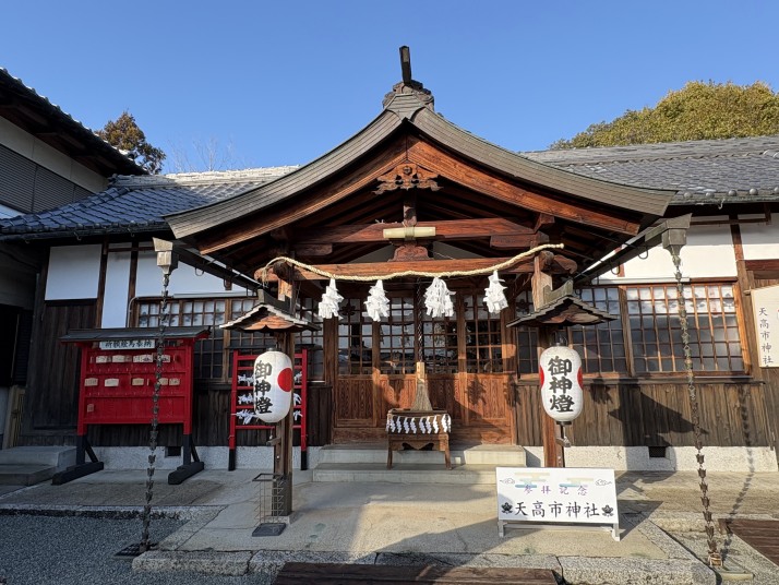 2.10 散歩deカシヤ 高市自民大勝の御礼に(天)高市神社へお参り。霊験あらたかな神様です、ありがとうございました。民家にも案内板。4198歩